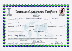 코스 측정은 국제도로경주 및 마라톤협회(AIMS)의 마라톤코스 측정 공인 A급 자격증을 가지고 있는 데이브 쿤디(오스트레일리아)가 했다. 쿤디는 국제육상연맹(IAAF) 아시아 오세아니아 코스측정담당관으로 애틀랜타 시드니올림픽 코스 등 세계 유명마라톤 코스를 측정한 베테랑. 이에 따라 국제육상연맹은 동아마라톤코스를 ‘국제공인 코스’로 인정하고 인증서(사진 참조)를 발급했다.
