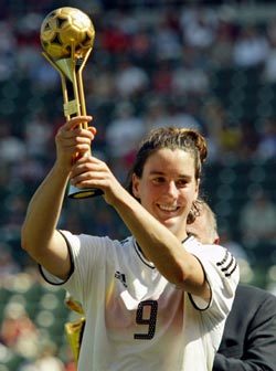 이날 1어시스트로 독일의 정상 등극을 도운 프린츠(25)는 득점왕(7골)과 최우수선수상(MVP)까지 휩쓰는 ‘트리플크라운’의 위업을 이루며 미아 햄(미국)을 이을 여자축구의 새 여왕으로 떠올랐다.