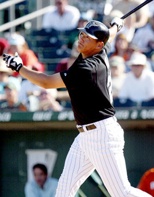 4일 미국 플로리다주 주피터의 로저딘스타디움에서 열린 마이애미대와의 시범경기. 6번타자 겸 선발 1루수로 출전한 최희섭은 2회말 선두타자로 나서 상대투수 알렉스 블랑코의 초구를 좌익선상에 떨어지는 2루타로 연결시켰다. 바깥쪽 낮은 초구를 자신 있게 받아쳐 3루 베이스를 타고 넘어가는 깨끗한 타구.