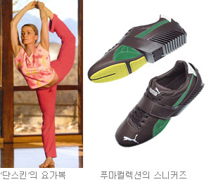 푸마가 올 상반기 선보인 요가 컬렉션 ‘마하누알라 라인’은 하늘색 연분홍색 등 잔잔한 파스텔톤 색상으로 구성돼 있다. ‘단스킨’의 요가 라인, ‘헤드’의 필라테스 라인도 흰색 베이지색 등 고급스러운 자연색을 사용한 천연 소재로 땀 흡수가 잘 되면서 신축성도 좋다.