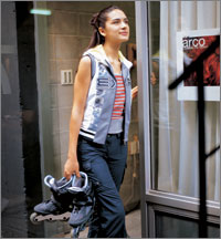 인라인을 즐길 때는 땀 흡수력이 좋은 면 소재 상의 위에 주머니가 달린 지프 업 후드 티셔츠를 입으면 실용적이다.