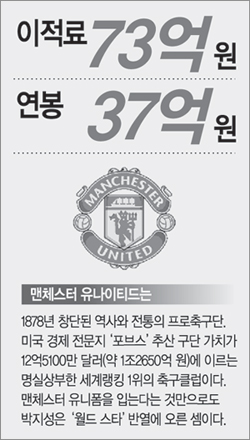 박지성의 에이전트인 FS코퍼레이션은 이날 맨체스터와 박지성의 원소속구단인 PSV 아인트호벤이 이적료 600만 유로(약 73억8000만 원)로 이적에 최종 합의했다고 밝혔다.