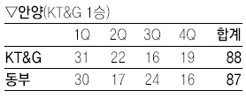 KT&G와 동부는 5승 3패로 공동 3위를 형성했다.