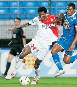 ![]() 한국과 첫 대결을 벌일 토고의 스트라이커 에마뉘엘 아데바요르(왼쪽). 아프리카 지역예선에서 11골을 터뜨려 토고의 첫 월드컵 본선 진출을 주도한 국민 영웅이다. 아데바요르의 소속팀 AS 모나코가 9월 21일 트루아와 프랑스리그에서 맞붙었을 때 모습. 게티이미지 |