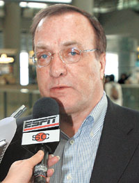 핀란드전을 마친 뒤 26일 열린 딕 아드보카트(사진) 한국축구대표팀 감독과의 인터뷰. 한국 기자들이 “오늘 승리를 축하한다. 이제 홍콩에서 맞붙는 크로아티아와의 경기는 어떻게 준비할 것인가”라고 묻자 아드보카트 감독은 “물론 이기는 것도 중요하다. 하지만 우리 팀이 어떻게 변하는지 좀 봐라”고 뼈있는 말을 했다. 그는 이어 “시간이 갈수록 조직력이 살아나고 젊은 선수들이 자신감을 찾아가는 게 최근 경기의 가장 큰 결실”이라고 덧붙였다.