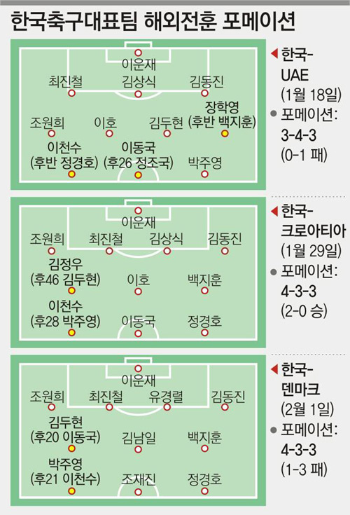 딕 아드보카트 감독은 올해 들어 5번의 경기에서 ‘4-3-3’ 포메이션을 4번 가동했다.