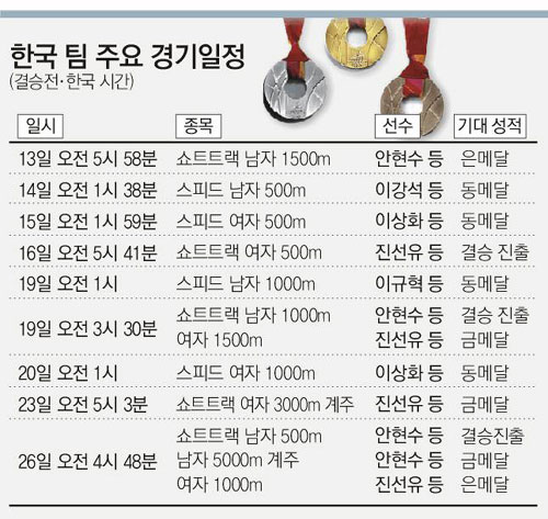 19일에는 금맥이 터진다. 오전 3시 30분부터 시작되는 쇼트트랙 여자 1500m, 남자 1000m 결선이 있다. 진선유가 나서는 여자 1500m는 쇼트트랙 계주를 빼고는 금메달이 가장 확실시되는 종목이다.