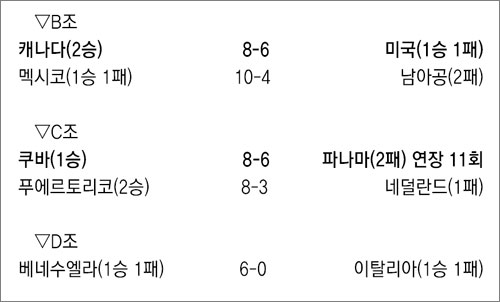 같은 조의 푸에르토리코는 네덜란드를 8-3으로 꺾고 2연승. D조에선 베네수엘라가 이탈리아에 6-0으로 완승, 1승 1패를 기록했다.