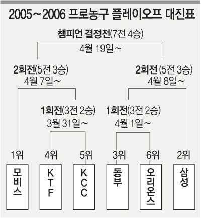 한편 6강 플레이오프는 31일 정규리그 4, 5위 팀인 KTF와 KCC의 경기로 시작된다.