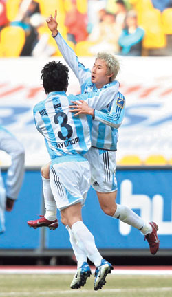 박주영의 기세도 무섭다. 박주영은 하루 전인 25일 제주 유나이티드와의 원정경기에서 2골을 몰아넣어 팀의 3-0 승리를 이끌었다. 이날 딕 아드보카트 축구대표팀 감독이 지켜보는 가운데 슈팅 2개로 2골을 넣는 효율적인 모습을 보였다. 두 골 모두 프리킥에 이은 헤딩슛이었다. 박주영도 4경기에서 3골을 기록해 이동국과 득점 공동 2위. 득점 1위는 4골을 넣은 우성용(성남 일화).