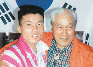 “바르셀로나 올림픽 스타디움 시상대 위에서 태극기 밑에 일장기(2위 모리시타)와 독일 국기(3위 슈테판 프라이강)가 오르는 것을 보고 1936년 베를린 올림픽이 떠올랐습니다. 당시 우리 민족에게 피눈물을 흘리게 했던 일제와 히틀러의 독일이 이런 식으로 업보를 받는구나 하고 생각했습니다.”