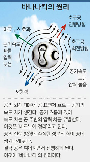 잉글랜드 데이비드 베컴 등 프리킥의 달인들은 대략 골대로부터 23∼33m 떨어진 거리에서 높은 성공률을 보인다. 이 거리에서 축구공이 골문을 통과하는 데 걸리는 시간은 0.70∼0.95초 정도다. 공의 평균속력은 118∼125km였다. 정확한 프리킥을 위해서는 차려는 부분과 실제로 발을 갖다대 차는 부분의 차가 2cm를 넘지 않아야 한다. 임팩트 순간 다리 전체에 진동이 오지 않고 대부분의 힘이 발에 전달되는 ‘스위트 스폿’에 공을 정확히 맞히는 능력이 중요하다. 스위트 스폿은 발의 위치를 말한다. (도움말=이인호 한국표준과학연구원 책임연구원)