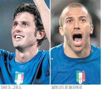 그로소는 스피드는 약간 떨어지지만 190cm의 장신과 탁월한 체력을 무기로 적극적으로 공격에 가담한다. 집중력이 좋고 측면 돌파 후 올려주는 크로스도 세계 최정상급으로 평가받고 있다. 한편 쐐기골로 이탈리아의 결승행을 확정지은 알레산드로 델피에로(32)는 이탈리아를 대표하는 ‘백전노장’.