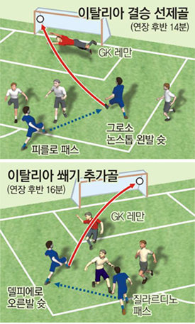 물론 수비는 여전히 철벽이었다. 이날 미로슬라프 클로제와 루카스 포돌스키 등 독일 골잡이들은 꽁꽁 묶였다. 이탈리아 수비는 지난달 19일 미국과의 E조 2차전에서 크리스티안 차카르도가 자책골을 내준 것을 빼고 단 한 골도 내주지 않고 있다.