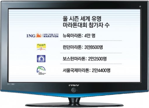 2만4000명이 넘는 참가자 수는 세계적으로도 의미가 있다. 세계 최대로 참가 인원 4만 명인 뉴욕마라톤과 3만8000여 명인 런던마라톤에는 뒤지지만 올해로 110회를 맞은 최고 전통의 보스턴마라톤(2만2500명)과는 어깨를 나란히 한다. 2만4000여 명이 달리는 대회는 세계적으로도 손가락에 꼽힐 정도다.