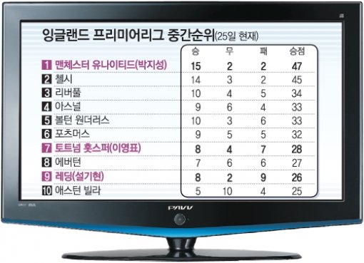 [스포츠 게시판]잉글랜드 프리미어리그 중간순위(25일 현재)