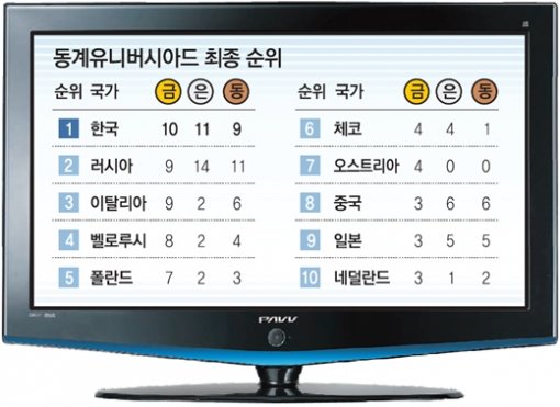 이번 대회에서 8위 중국(금 3, 은 6, 동 6)과 9위 일본(금 3, 은 5, 동 5)이 쇼트트랙과 피겨스케이팅, 스노보드, 컬링 등 다양한 종목에서 입상한 것과 비교되는 부분이다.