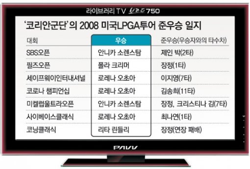 이로써 한국 선수들은 로레나 오초아(멕시코)와 안니카 소렌스탐(스웨덴)이 모두 빠져 우승의 기회로 여겼던 이번 대회에서도 시즌 첫 승에 실패하며 지난해 7월 이후 26개 대회 연속 무관의 부진에 허덕였다.