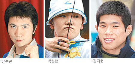 2004년 아테네 올림픽 금메달리스트인 남자 탁구의 ‘간판’ 유승민(26·삼성생명)과 여자 양궁의 ‘신궁’ 박성현(25·전북도청), 남자 레슬링의 ‘작은 거인’ 정지현(25·삼성생명)이 그들이다.