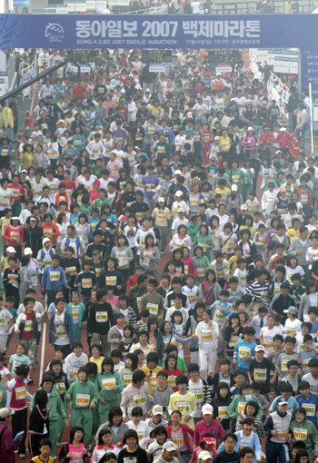 백제마라톤은 동아일보사가 특별 후원하는 하이서울마라톤(12일), 동아일보사 주최 경주국제마라톤(19일)으로 이어지는 ‘10월 마라톤 시리즈’의 시작이다.