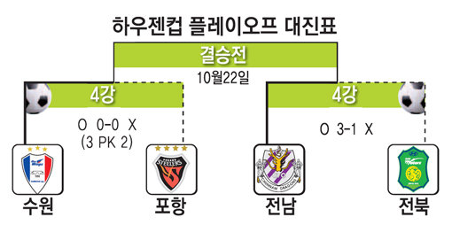 수원과 전남이 올 시즌 컵 대회 정상을 가린다. 수원은 8일 수원월드컵경기장에서 벌어진 포항과의 컵 대회 4강 PO에서 전·후반 90분과 연장에서도 0-0으로 승부를 가리지 못한 뒤 승부차기에 돌입, 이운재의 신들린 선방을 앞세워 3-2로 힘겹게 이겼다. 전남은 전북과의 원정에서 곽태휘의 2골에 힘입어 3-1로 승리했다. 결승전은 22일 수원월드컵경기장에서 벌어진다.
