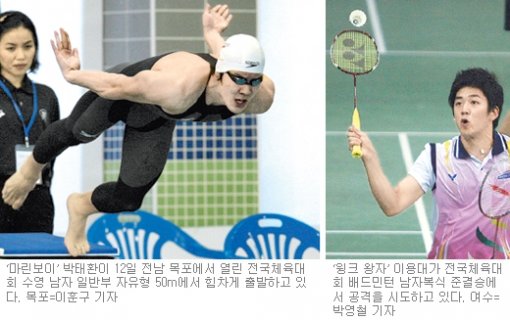 ‘마린보이’ 박태환(19·단국대)은 12일 목포실내수영장에서 열린 수영 남자 일반부 자유형 50m에서 22초73의 대회신기록으로 우승했다. 박태환은 13일 계영 400m, 14일 계영 800m, 15일 자유형 100m, 16일 혼계영 400m에 출전해 5관왕에 도전한다.