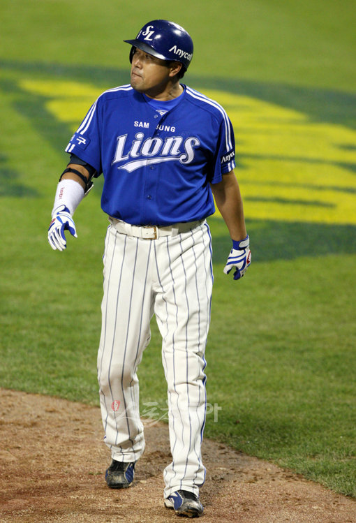 7회 초 외야 플라이 아웃을 당한 양준혁이 퇴장하고 있다.