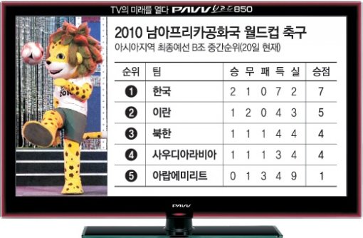 한국은 20일 사우디아라비아 리야드 킹파드 스타디움에서 열린 2010년 남아프리카공화국 월드컵 아시아지역 최종예선 B조 3차전에서 이근호(대구 FC)와 박주영(AS 모나코)의 연속 골을 앞세워 사우디아라비아를 2-0으로 꺾었다. 이로써 한국은 2승 1무(승점 7)로 이날 아랍에미리트(1무 3패·승점 1)와 1-1로 비긴 이란(1승 2무·승점 5)을 승점 2점 차로 제치고 조 1위를 지켰다. 사우디아라비아는 승점 4로 이날 경기가 없던 북한과 동률을 이뤘지만 득실차에서 뒤져 4위로 떨어졌다.