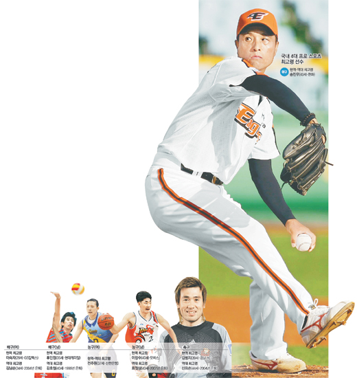 송진우(한화)는 현역뿐 아니라 역대 최고령으로 그가 등판할 때마다 국내 프로야구의 역사가 달라진다. 송진우는 호적상 43세(1966년)로 돼 있지만 실제 나이는 45세(1964년)이다. 이 밖에도 투수로는 구대성(40·한화)과 가득염(40·SK), 타자로는 김동수(41) 전준호(40·이상 히어로즈) 양준혁(40·삼성) 등이 나이를 잊고 뛰고 있다.