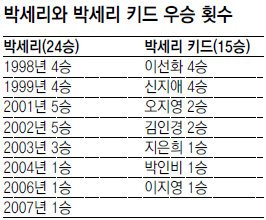 이로써 올 시즌 미국LPGA투어에서 한국 선수들이 합작한 3승은 모두 1988년생 동갑내기인 김인경 신지애 오지영의 손끝에서 나왔다. 거센 세대교체 바람 속에서 박세리와 이번 대회에서 3위를 차지한 ‘엄마 골퍼’ 한희원(31·휠라코리아) 등 언니들도 힘을 내면서 코리안 군단의 상승세에는 더욱 가속이 붙게 됐다.