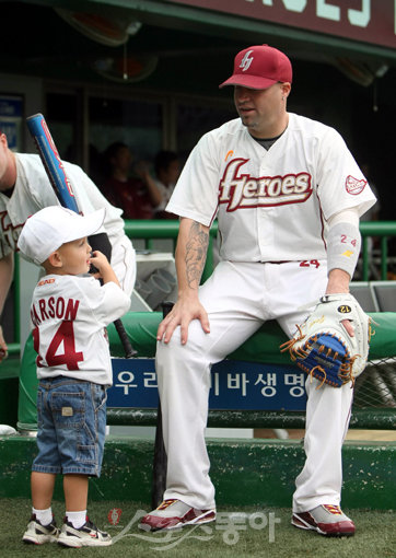1일 목동구장. 시구자와 시타자가 그라운드에 모습을 드러내자 관중들의 환호성이 터졌다. 이날 주인공은 다름 아닌 히어로즈 용병 브룸바의 아들 케이든(6)과 칼슨(3). 특히 케이든은 브룸바의 뒤를 잇는 ‘야구신동’으로 이미 구단 내에서 소문이 자자하다.