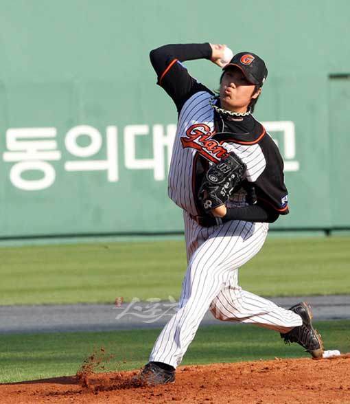 23일 부산 사직야구장에서 열린 프로야구 롯데와 LG의 경기에서 롯데 선발 투수 조정훈이 마운드에 올라 역투하고 있다.