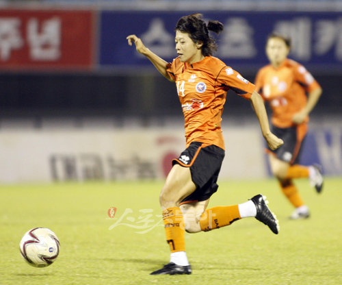 14일 오후 수원종합운동장에서 열린 여자프로축구 2009 WK-리그 대교 대 수원시시설관리공단의 경기. 대교 최미진.