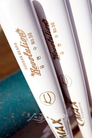 김현수의 방망이 6개 중 2개는 김동주의 것이었다. 선배의 기를 받기 위해 포스트시즌 전부터 받은 방망이. 그리고 4자루는 평소 자신이 사용하는 길이 34인치·무게 910g의 새 것이었다. 나중에 받은 2자루는 한화 김태균이 사용하는 방망이와 제공자가 신원을 밝히지 않는, 다른 팀 교타자의 것. 그것도 국내에 한 개 밖에 없다는 방망이였다.