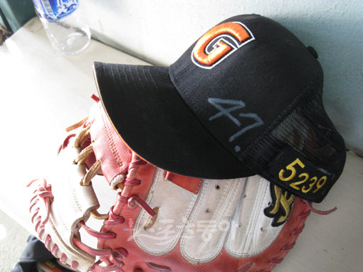 47번. 롯데 포수 장성우의 모자 위에 커다랗게 적힌 선배 포수 강민호의 등번호. 가을잔치에 함께 하지 못한 선배를 기억하기 위한 후배의 마음이다. 냉정한 프로의 세계. 어찌 보면 강민호의 부상 ‘덕분에’ 포스트시즌 안방을 꿰찰 수 있었던 장성우다. 하지만 선배를 향한 마음은 진심이다. 팔꿈치 수술을 받으러 30일 미국으로 떠난 강민호와도 전화로 안부를 나눴다. “건강한 모습으로 복귀하시라고 인사 드렸어요. 얼른 돌아오셨으면 좋겠네요.” 강민호는 후배 덕분에 이렇게나마 함께 할 수 있게 됐다.