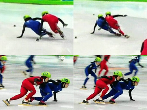 한국쇼트트랙여자대표팀은 25일(한국시간) 밴쿠버 퍼시픽 콜리세움에서 열린 여자 3000m 계주 결선에서 가장 먼저 골인했다. 하지만 석연찮은 심판 판정으로 실격 당해 눈앞의 금메달을 중국에 내줬다. 한국의 김민정이 중국의 선린린에게 임페딩(밀치기) 반칙을 범했다는 게 이유였다.