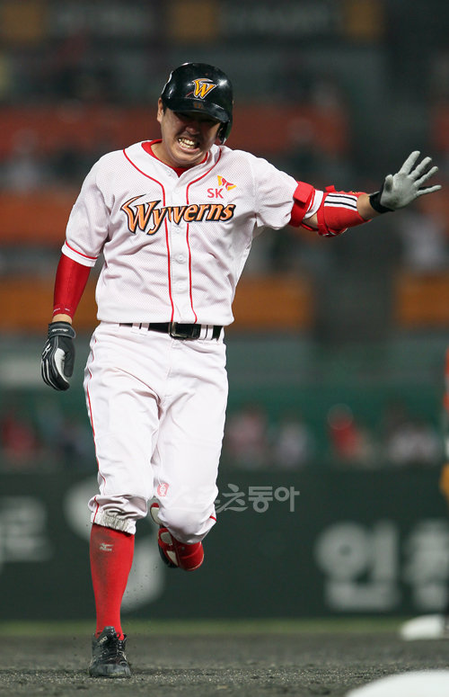 2일 인천 문학구장에서 열린 2010 프로야구 SK와 한화의 경기에서 7회말 1사 1루 상황에 중견수 앞 적시타를 때려낸 나주환이 3루수의 실책으로 힘겹게 3루 까지 진루하고 있다. 나주환은 2루 베이스에 슬라이딩하다 오른쪽 어깨를 부상당했다.