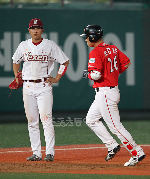 16일 오후 서울 목동야구장에서 열린 2010 프로야구 넥센 대 SK 경기에서 9회초 SK공격 박경완이 1사 2,3루상황에서 우익수 뒤 3점 홈런을 치고 난 후 그라운드를 돌고 있다.