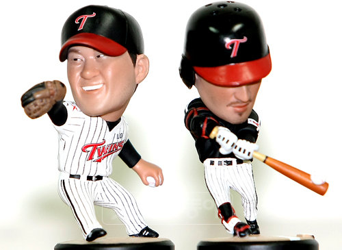 LG가 봉중근 박용택의 피규어(사진)를 출시했다. 18일 오후 1시부터 선착순 50명에 한해 LG트윈스 온라인 쇼핑몰(www.lgtwins.com)을 통해 예약 판매를 실시하며, 정상가격인 35000원에서 15% 할인된 2만9800원에 구매할 수 있다. 29일부터 잠실야구장 LG트윈스 용품 매장이나 LG트윈스 온라인 쇼핑몰에서 구입할 수 있다.