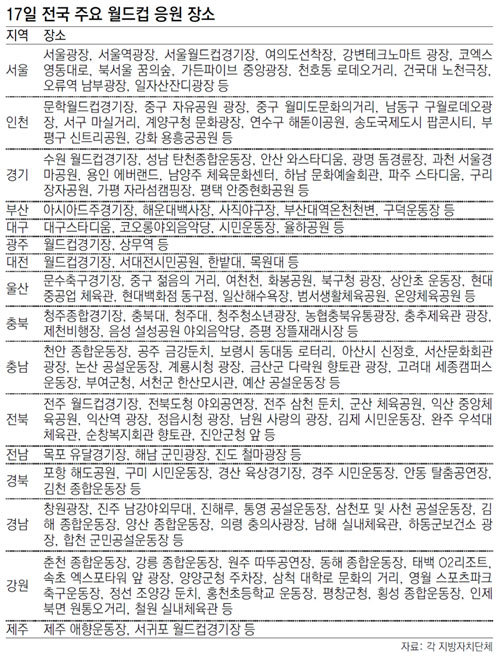 결전의 날이 밝았다. 17일 오후 8시 반 첫 월드컵 원정 16강 진출의 중요한 고비가 될 아르헨티나와의 경기를 앞두고 전국에서 응원 열기가 달아오르고 있다.