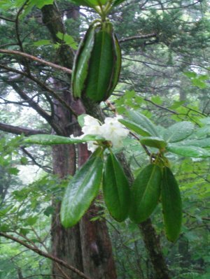대승령에 오르는 등산로엔 한국 특산의 금마타리, 산꿩의다리, 다래, 산목련(함박꽃나무)이 얼굴을 드러내 보이며 우리를 반기고 있었다. 함박꽃나무는 전국의 산골짜기에 자라며 은은한 향이 향기롭다. 북한에서는 ‘목란’이라 부르며 그들 국화로 지정하고 있다. 흉하게 메워진 용탕을 지나 절벽 아래를 지나는데 만병초 꽃잎이 하나 떨어져 있다.