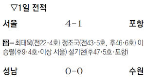 서울과 포항의 경기에서는 1골 1도움으로 맹활약한 최태욱의 활약으로 서울이 4-1로 이겼다. 이날 승리로 서울은 3위(승점 36점)로 올라서며 치열한 선두 다툼을 예고했다.