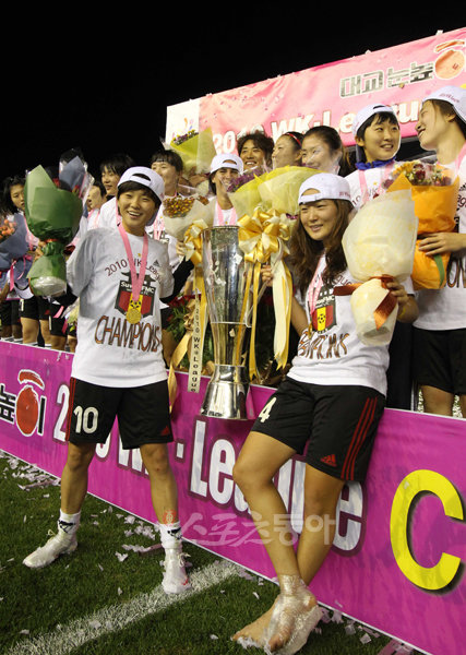 수원 FMC는 30일 오후 울산종합운동장에서 벌어진 현대제철과의 ‘대교눈높이 2010 WK리그’ 챔피언결정전 2차전에서 2골을 터뜨린 전가을(22)의 활약에 힘입어 2-0으로 이겼다. 수원 FMC는 이날 승리로 1차전 0-1 패배를 딛고 1,2차전 합계 2-1로 정상에 올랐다.