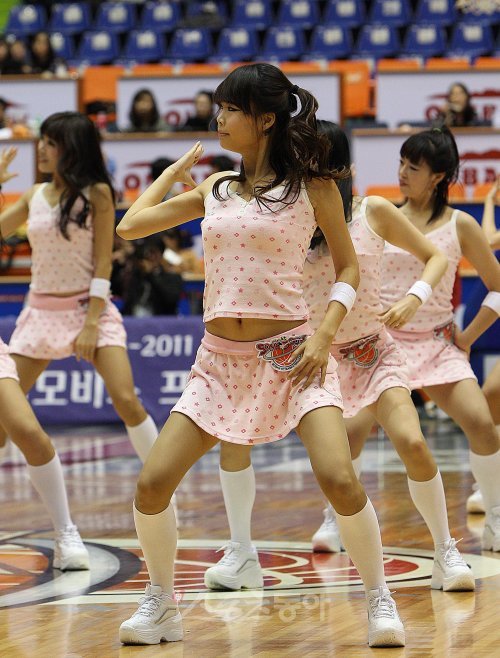 3일 오후 부산 사직실내육관에서 열린 2010-2011 현대모비스 프로농구 부산 KT와 서울 SK의 경기에서 치어리더들이 멋진 공연을 펼치고 있다.