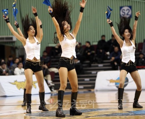 9일 오후 서울 잠실실내체육관에서 열린 프로농구 2010-2011 서울 삼성 썬더스와 창원 LG세이커스의 경기에서 휴식시간을 이용해 치어리더들이 멋진 공연을 펼치고 있다.