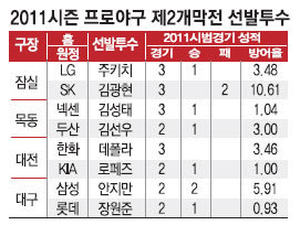 ○예외 없는 법칙은 없다? 4월 부진에도 불구하고 결승점을 1위로 통과한 예외도 눈에 띈다. 1990년 LG와 1996년 해태다. MBC를 인수해 1990년 등장한 LG는 그해 4월 6승8패로 7개 구단 중 꼴찌에 머물렀으나 페넌트레이스 1위(71승49패)로 한국시리즈에 올라 삼성을 4연승으로 잠재우고 우승을 거머쥐었다. 1996년 해태도 4월 5승9패, 8위로 부진했으나 당당히 페넌트레이스 1위, 한국시리즈 우승을 차지했다.