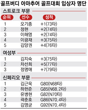 2오버파 74타를 친 정현 씨가 2위, 이해영(74타), 이광재(75타), 김양권(76타) 씨가 5위까지 주어지는 결승 티켓을 손에 넣었다.