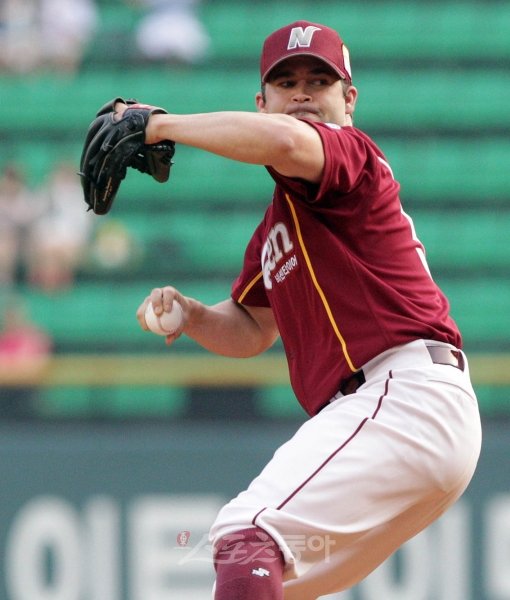 14일 서울 잠실야구장에서 열린 ‘2011 롯데카드 프로야구’ 두산과 넥센의 경기에서 넥센 선발 나이트가 역투하고 있다.