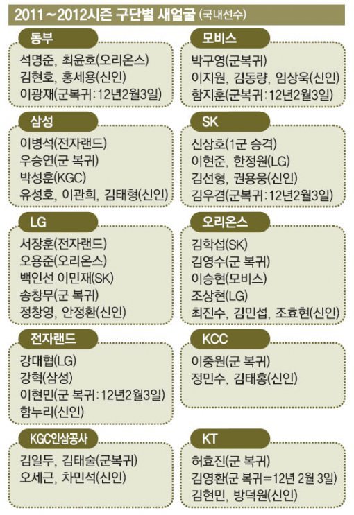 시즌 개막을 앞두고 각 구단은 이례적일만큼 다양한 트레이드를 통해 선수들을 주고 받았다. 유니폼을 바꿔 입은 대어급 선수들도 유독 많다. 특히 ‘4대 천황’으로 불리는 거물급 신인까지 가세해 올시즌은 어느 때보다도 역동적인 시즌이 될 가능성이 크다.<표 참조>