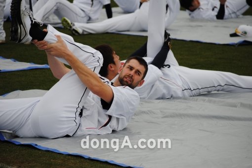 [포토] 두산 니퍼트 ‘다리 찢기는 힘들어’